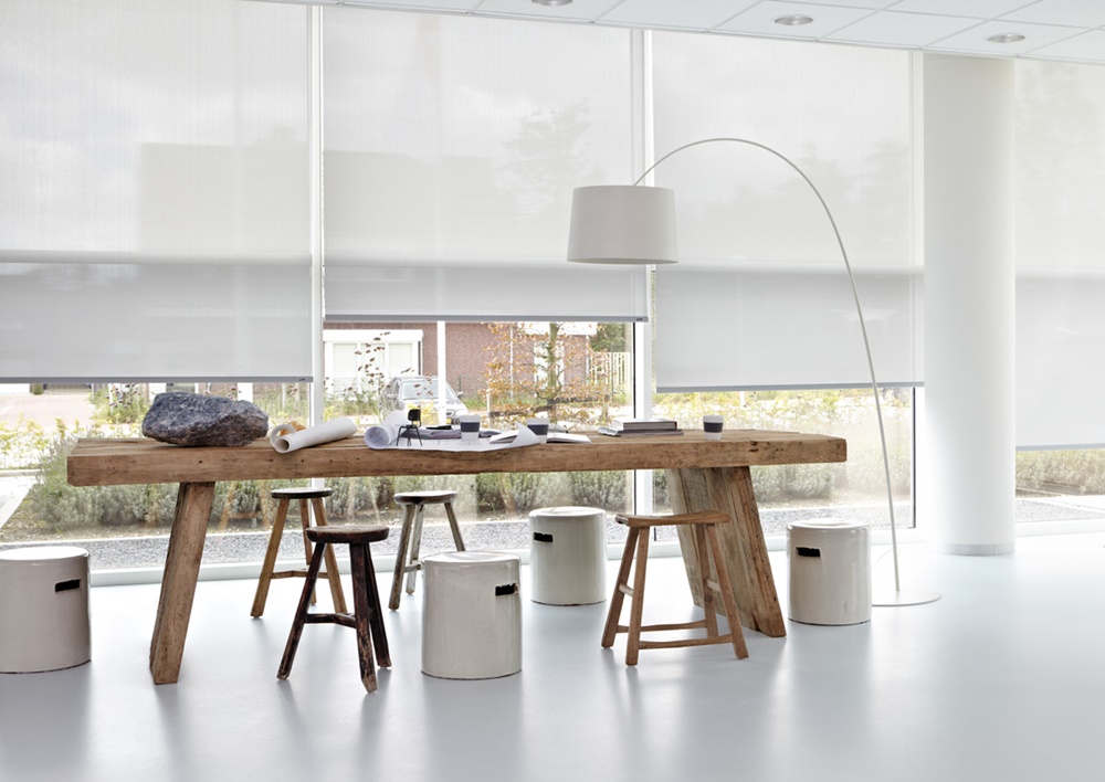 As faixas de tecido opaco e translúcido da cortina Twinline permitem um visual inovador na decoração dos ambientes. Além de funcional, o modelo protege contra os raios solares.