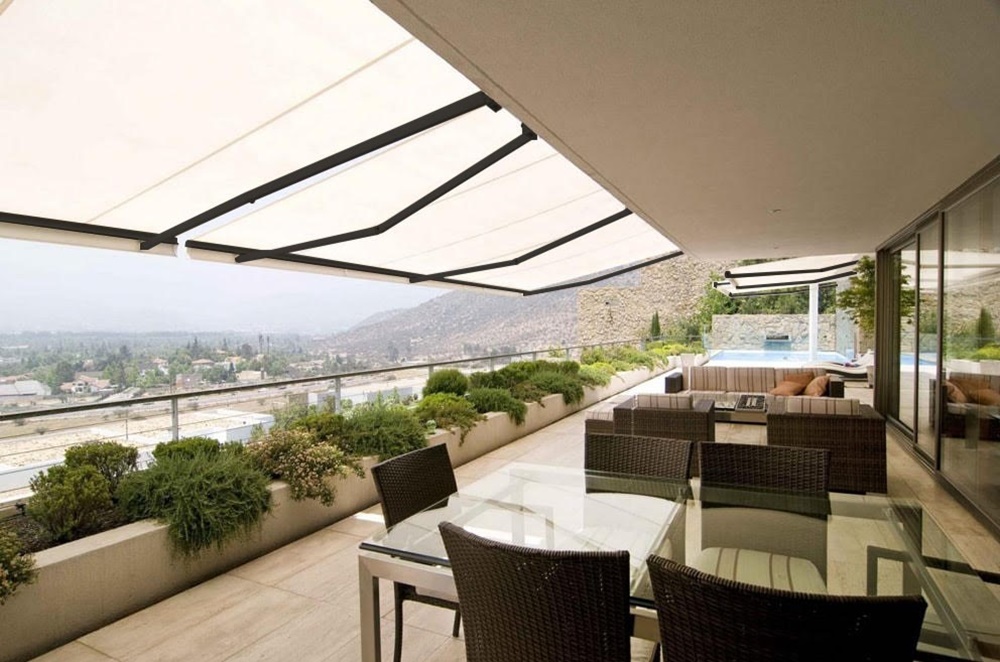 O toldo de braço articulado retrátil da Hunter Douglas agora oferece estruturas também em preto. Conheça as funcionalidades deste elemento para proteção solar.